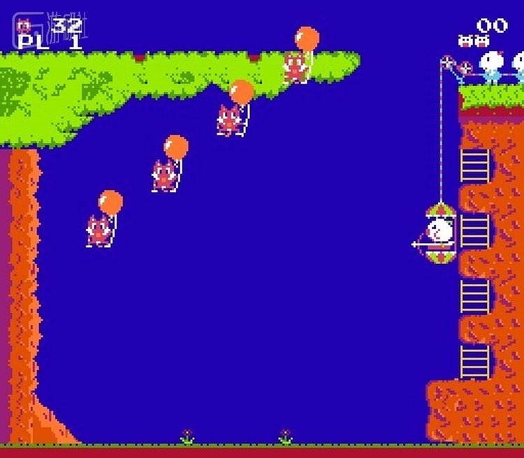 游戏的核心玩法,本质上就是横过来打《小蜜蜂》。《电子游戏软件》里说,回字有四种写法,射击游戏也有四种玩法,《猪小弟》就是其中一种。为了阻止大灰狼逃出老家,必须把他们的气球打爆。每次打爆气球都有一种莫名的爽快感,或许这就是射击游戏的魅力。