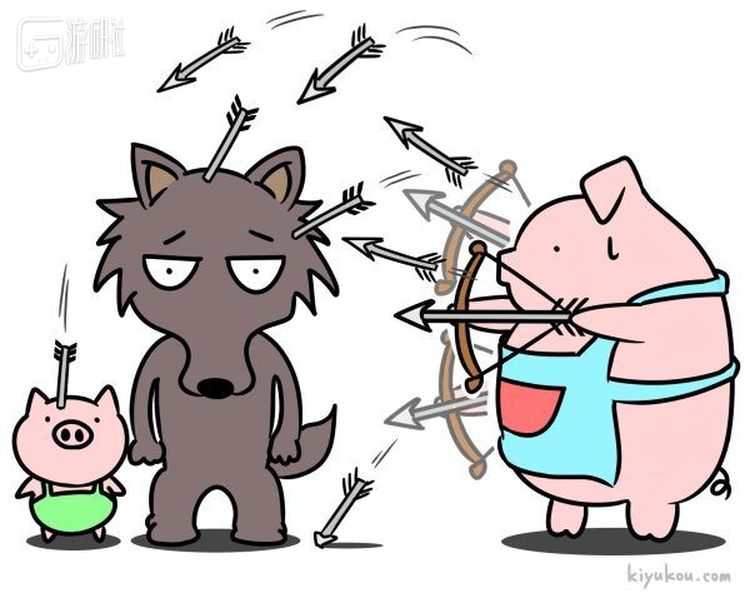 说到猪与狼的故事,相信各位都会首先想到著名童话《三只小猪》。在长鼻君小时候,也听到过有人把《猪小弟》称为《三只小猪》的。现在看看,这样称呼也未尝不可,游戏里可不就是一头种猪在前面负责射,两头猪在后面负责拉皮……绳么。
