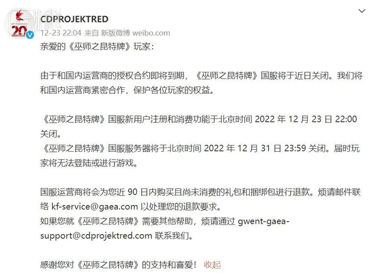 从《巫师》系列中脱胎而出的卡牌游戏《巫师之昆特牌》,原本终于出现在了这次的过审游戏名单里,获得移动端版号对于一个卡牌游戏的意义不言而喻。但很可惜的是,就在几天前游戏官方已经发出了公告,宣布《昆特牌》的国服将在今年末关闭。盖娅互娱拿到手的这串版号,保质期只有短短的3天。