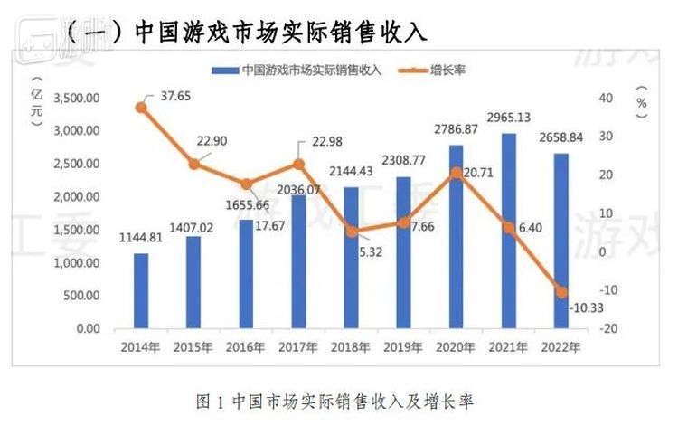 而《报告》的数据同样证实了这点。据《报告》显示,2022年中国游戏市场实际销售收入2658.84亿元,同比 减少306.29亿元, 下降10.33% ;游戏用户规模6.64亿, 同比下降0.33% ;自主研发游戏国内市场实销收入为2223.77亿元, 同比下降了13.07% 。
