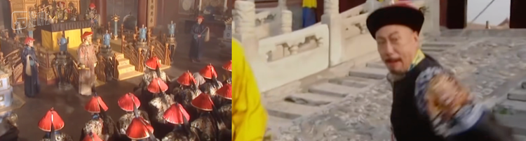 然而,即便能够对康熙朝的大事件倒背如流,单凭这一片段,我们所能获得的信息量也着实有限:你不知道剧情所对应的历史片段,更不知道前因后果。台下官员,尤其是作为反面教材的几个罪臣都面目模糊,通篇只是康熙皇帝的个人秀。