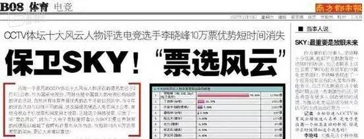 这件事不只是在网络上引起轰动,一些敢于说话的纸媒也表达出自己的态度。南方都市报以《保卫SKY!“票选风云”》为题,大篇幅的报道了这次事件,而重庆晨报更是以一篇《央视被指歧视电竞》将矛头直接指向主办方央视,并且还原了事件的完整过程。