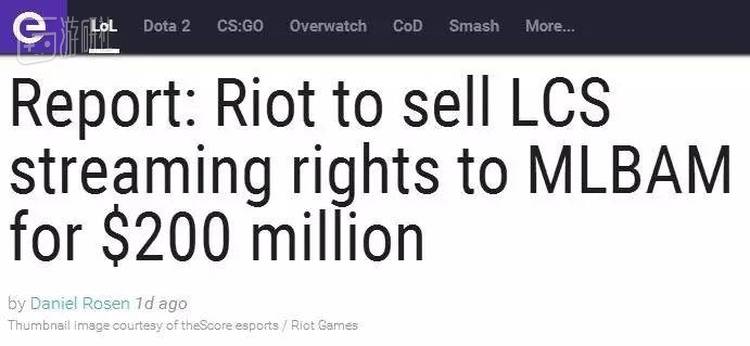 拳头公司将LCS赛区的转播权以2亿美元的价格售出