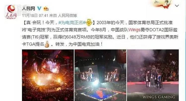 然而对电竞发展推动最大的还是官方的支持和媒体的正面报道。快速发展的电竞产业引起了国家的重视,今年Wings在美国夺得冠军,国家体育总局信息中心的领导亲自前往现场向这群为国争光的选手表示祝贺。Wings在这场比赛中赢得了900多万美元的巨额冠军奖金,这份奖金不仅让他们打破了吉尼斯世界纪录,还给中国电竞赢来了新的机遇。