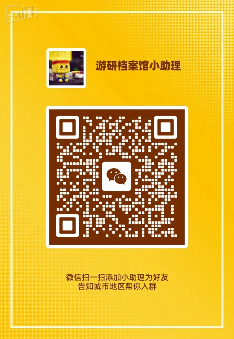 接下来档案馆还会有更多线下活动,想要第一时间获取活动通知的朋友,欢迎添加“游研档案馆小助理”微信(微信号:yydagxzl),加入我们的线下社友群。