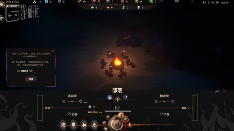 此时,游戏已经通过初步体验在告诉玩家,你需要摒弃过去玩生存模拟经营游戏的思维来推进《末夜部落》——游戏无法回溯上一步,你需要不断推进、在严苛的条件下不断重来,努力将游戏推进下去。说句不太人道的话,反复献祭这些人类才是你摸索游戏正确道路的最好途径。
