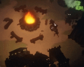 直到你下达命令让他们开始建造帐篷、仓库、猎人小屋,或者天亮之后,他们才会不情不愿的离开篝火开始在黑暗中开始工作——考虑到黑暗时本作重要主题,开发者给所有人类换上了一双钛合金发光眼,你可以通过黑暗中闪闪发光的眼睛辨别他们的位置和行径。