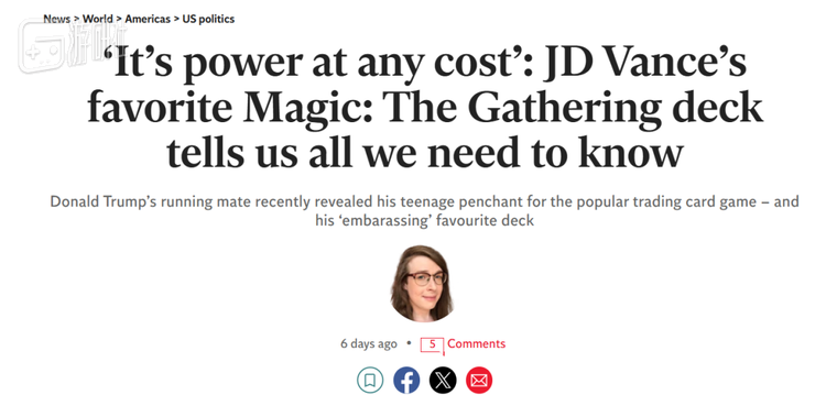 现在的JD万斯,已经正式成为了候任美国副总统——但当时的他可能也想不到,自己引发争议的原因,会是“儿时玩过《万智牌》”。