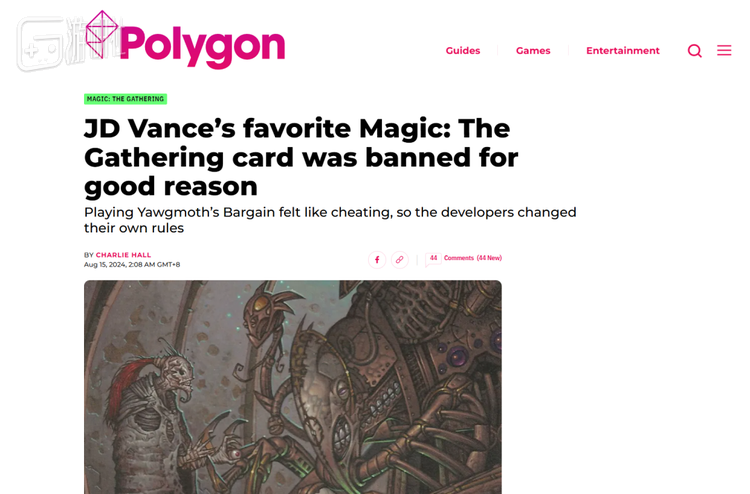 如今美国大选已经结束,这些纷纷扰扰也已经无关紧要——特朗普和万斯这对搭档已经注定再次领导美国。虽然他们的事情跟我们这群在太平洋另一侧的人很遥远,但意外的联系却让人觉得颇为耐人寻味,无论万斯选上与否,至少《万智牌》的玩家可以这么调侃一句: