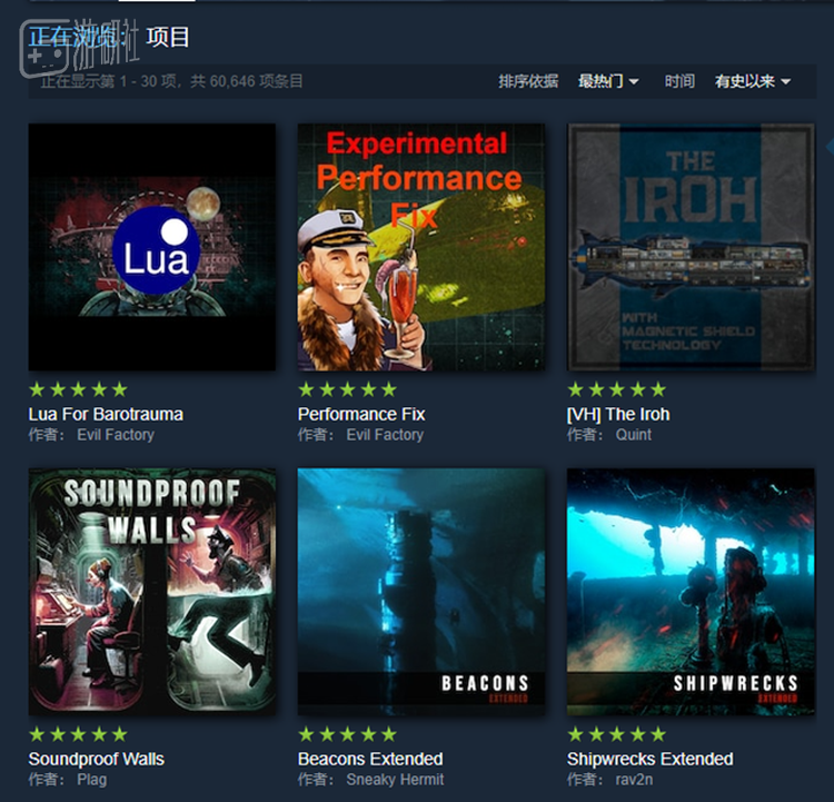 对游戏内容了如指掌的老船员,则会把通关后的成百上千个小时花在《潜渊症》的模组上。他们不仅用海量模组武装自己,也会自制并上传模组造福他人,享受全新乐趣。光是Steam创意工坊,就能搜到超过6万项条目,比起不少自由度更胜一筹的开放世界游戏还热门。
