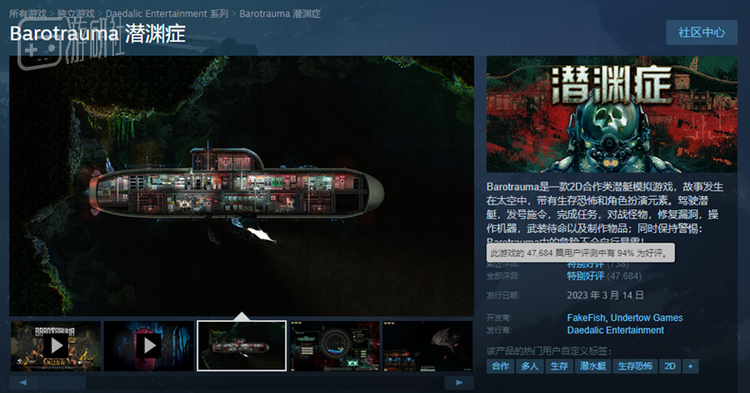 但它也是那种火出圈、火出气质的硬核游戏。目前《潜渊症》在Steam有超过4.7万条评论,好评率为94%。
