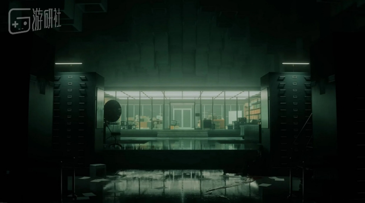 一个漆黑的房间里,隐约可见《控制》风格的清水混凝土,手电筒扫过去,密密麻麻全是阿兰·维克同款打字机,随之而来的还有噼里啪啦如耳鸣般交织的无数打字声。