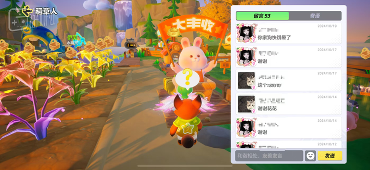 现在再回到游戏,元梦已经变成了一个“很难说哪件事是正事”的大游乐园。至少,我和朋友们相识重新找回了QQ空间时代的网友串门乐趣:每天早起偷菜、周末经济作物赶农场双倍;邀上三五好友去组团炸鱼,自己在家养养农场小狗、互送礼物,给对方留言板留留言……这可能就是元梦想给大家带来的温馨社交感觉吧。
