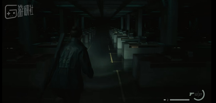刚刚走过逼仄通道来到这个大房间的我,没感到一点舒畅,反而在听到连绵打字机声的那一刻立马收获了一身鸡皮疙瘩——这一幕的惊悚感远比《心灵杀手2》本体里无数的Jump scare来得印象深刻,这正是我期待在《心灵杀手2》里看到的。