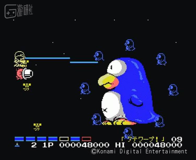 既然说到了科乐美的其他游戏,那就不得不提这只企鹅当年有多红了。在《南极大冒险》推出之后,由于滑稽可爱的动作,使得这只企鹅人气大增,科乐美索性就给它扶上了吉祥物的宝座。八十年代科乐美的许多游戏里,都能见到这只企鹅的影子,比如《宇宙巡航机2》《乒乓球》《科乐美世界》、《大盗伍右卫门2》等等。