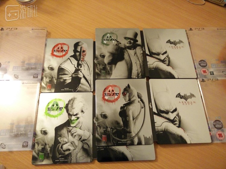C89喜欢收集铁盒版游戏,图为四个不同版本的《蝙蝠侠:阿卡姆城》铁盒