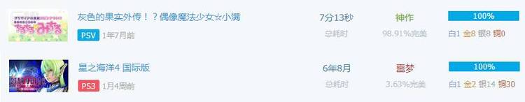 有几分钟就能白金的,也有需要耐着性子刷上几年的(6年是从开始到100%的间隔时间)