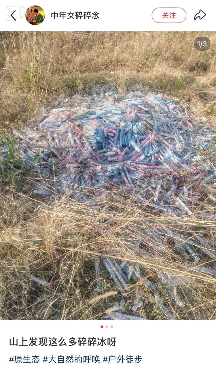 一位博主发现山上有许多野生的碎碎冰,包装完好、形态完整,仿佛崭新出厂。