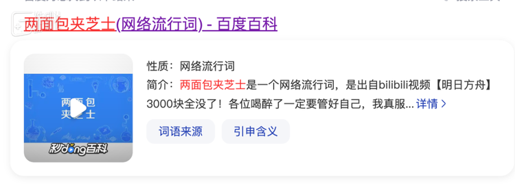但它也很快引发了B站上的广泛复读与二创,这句醉语也很快被空耳为“两面包夹芝士”,成为一种流传至今的玩笑。相关视频播放量最高已突破3000万。