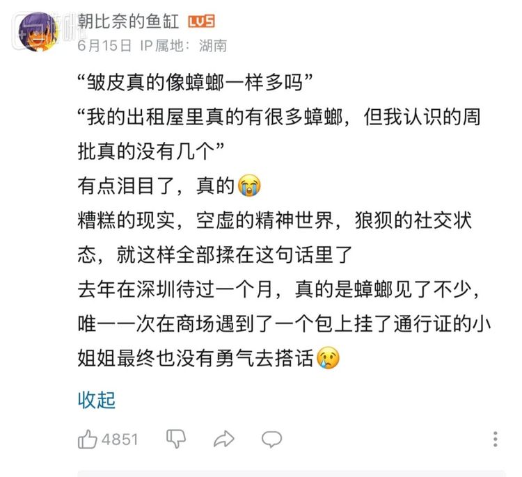 “我的出租屋里真的很多蟑螂,但我认识的粥批真的没有几个。”