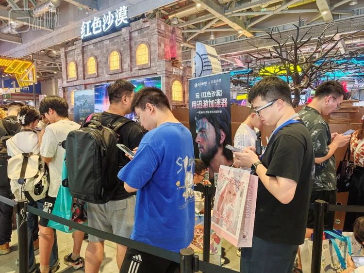 到了BW第三天上午,《红色沙漠》展台已经排起了长队。有人单纯是为了良心的试玩奖品(双肩包+手持风扇),也有人是在朋友的力荐之下特意前来体验。