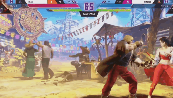 Blaz选择的是继续压制,然后被小孩的升龙命中,双方回到均势。