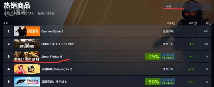 虽然格斗游戏一直被视为小众项目,但小孩二连冠的影响力有多大?一则更好玩的数据是,夺冠后的第二天,《街霸6》的销量在Steam就登上了国区热销榜第三: