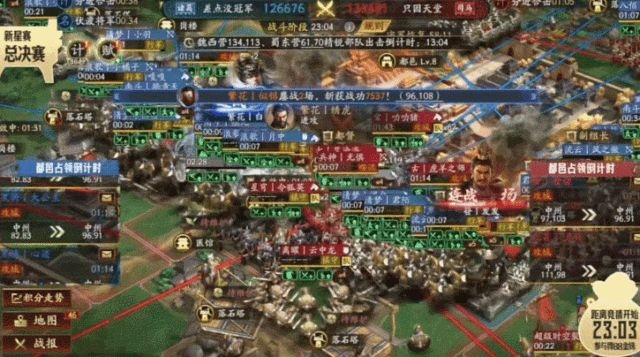 就像另一位参与过多届、多赛道的龙虎赛选手可乐提到的,其他电竞赛事,队伍一般是五个人左右,而三战的龙虎赛,90人的战队,分3个指挥,1个总指挥。整场游戏中,指挥很少亲自操作参与战斗,基本一直在看地图,时刻了解哪些地区有多少人,对方在做什么战术准备,我方面临怎样的战场局势,再由此进行积极的战术调整。