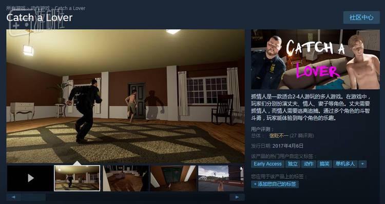 这个游戏名叫《Catch a Lover》,你也可以叫它《老王逃生记》。这是一个联机游戏,支持2~4人游玩。