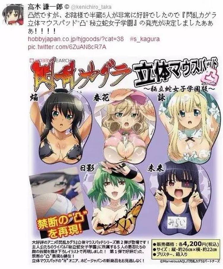 立体鼠标垫一直是这类游戏常做的周边,闪乱系列更是独具创新、别出心裁的推出了凸点版本,制作人亲自在推特上宣传其卖点“禁断之凸”。