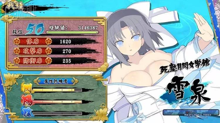 阴属性是靠“命驱”状态来积累经验的。所谓命驱,即是以生命驱动的战斗,此状态下角色会脱掉所有的服装(当然内衣还是有所保留),攻击翻数倍,防御力锐减,原理大概和紫龙脱了圣衣一样。