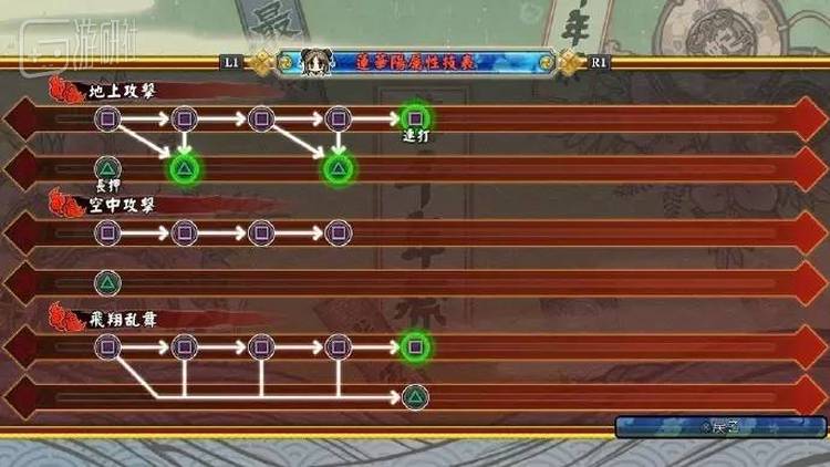 每个属性都有独立的出招表,图为莲华的阳属性