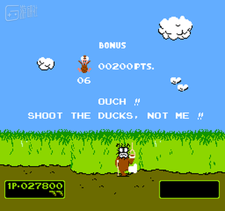 《打鸭子》是任天堂制作的光枪游戏,最早只是个简单的街机游戏,远不如后来的FC版人气高,理由跟FC版里新添加的那只贱狗有关。