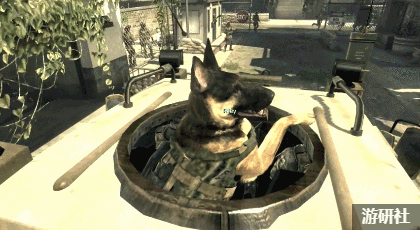 即便如此,这条军犬在游戏中的表现还是可圈可点的。不仅能听从玩家指令行动,还可以在某些地方,供玩家自己来操控。不要小看莱利的能力,他能攻击驾驶员搞掉低空飞行的直升机,剧情里还跟群狼缠斗,救了玩家一命。有段过场动画里,他还威风凛凛的坐上坦克游街,抢尽风头。