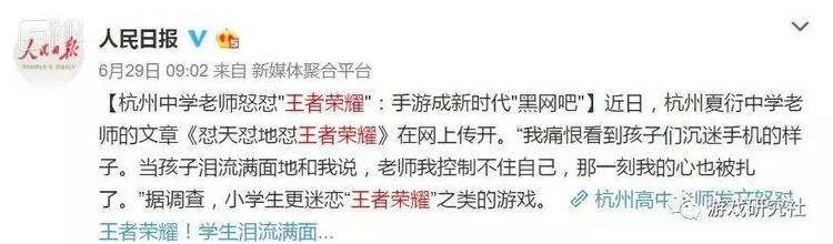 这一系列事件,伴随着近日《杭州中学老师怒怼王者荣耀》一文,让“讨伐”王者荣耀的气氛到达了顶点。
