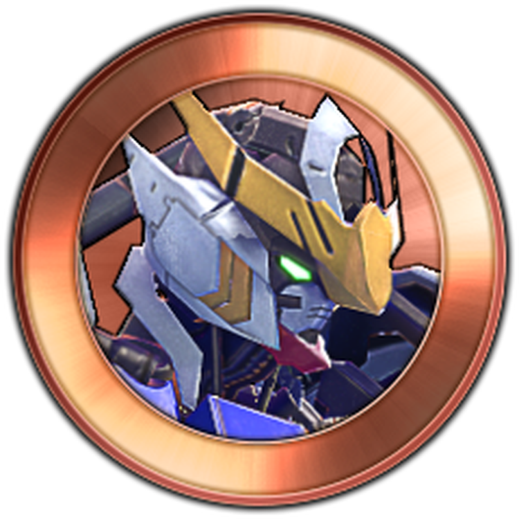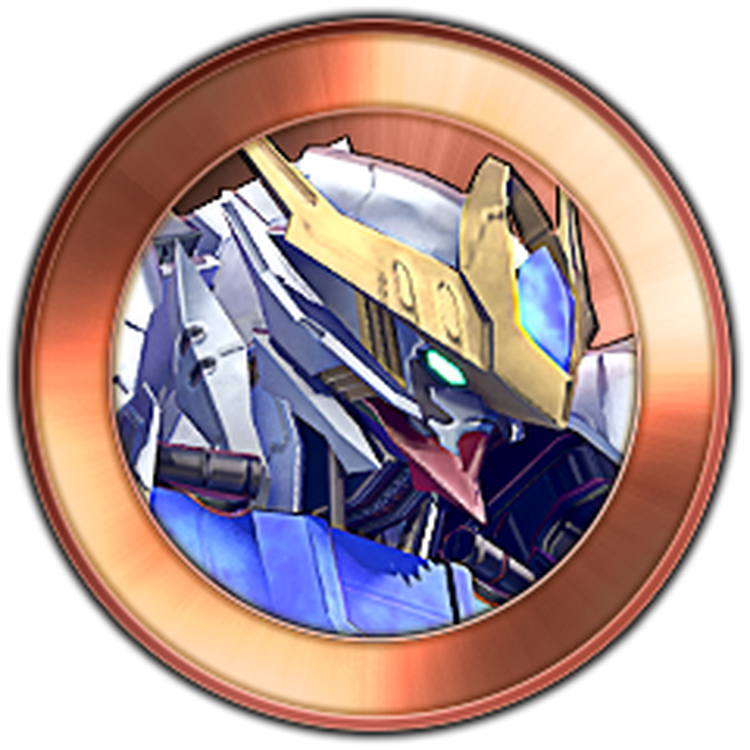 出自2015年动画《高达铁血的孤儿》第1话标题“鉄と血と”。奖杯图标为高达巴巴托斯。终极模式是游戏中的“生存战”,玩家将面对接连出现的敌方机体。