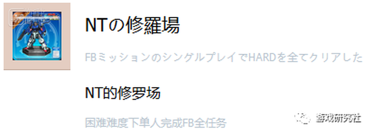 到了续作《高达EXVS FB》,这个梗玩的更深一些,命名远不止是动画中的名称,而需要结合作品的剧情理解,比如一个名为“NTの修羅場”的奖杯,图标是ZZ高达,结合奖杯名称,不难想到这是在指代ZZ高达的驾驶员捷多与普露、普露兹三者之间的关系。