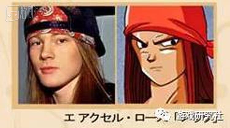 枪花乐队主唱Axl Rose,对应角色为诺克,第二十八届天下第一武道会参加者,在漫画最后篇章“10年后”里登场,对阵贝吉塔的杂鱼一只。
