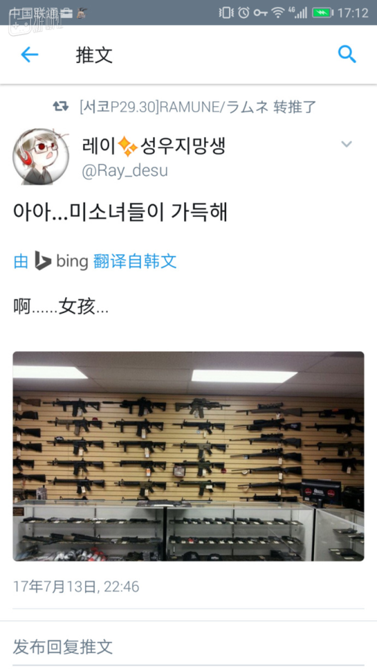 前段时间,有一则国外推文被转到国内,引起不少讨论。推主在进入枪店时面对琳琅满目的热武器,发出了“啊……女孩…”的感慨。