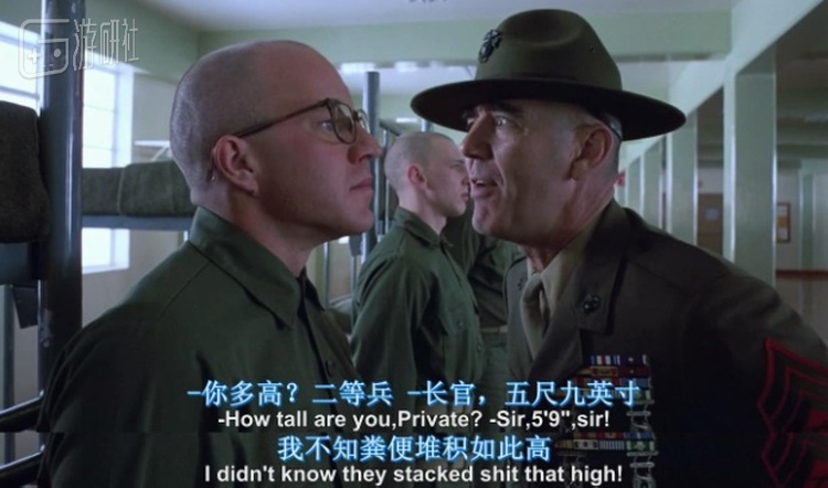 不过,“全金”最声名远扬的不是反战精神,反而是“脏话教科书”这个简单粗暴的绰号。与其他宣扬美国海军陆战队威武正面形象的电影不同,“全金”为突出反战精神,对越战期间的美军进行了大量讽刺性又不失真实的描写,尤其体现在新兵训练阶段的粗暴训练,这些平日里闻所未闻的花式侮辱话语,对普通观众造成了极大冲击。