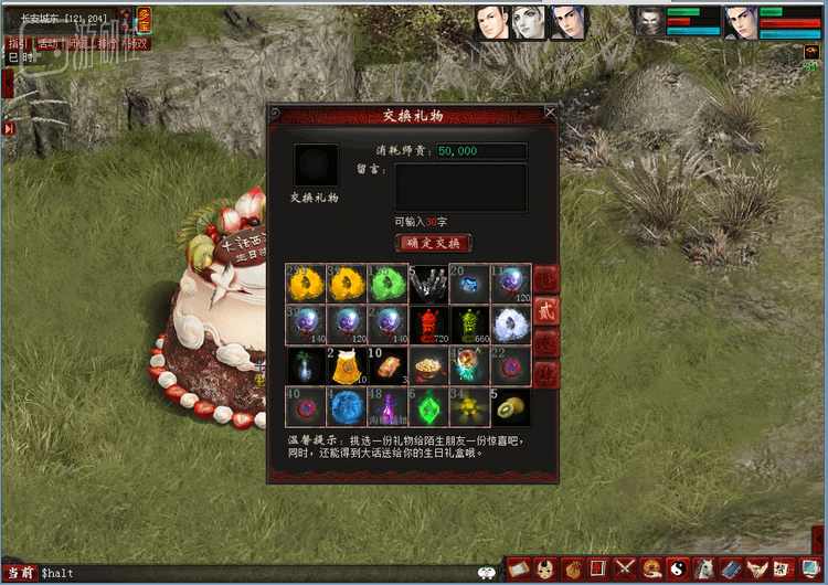 大话2已陪伴我们走过十五个岁月,免费版也已经三周岁了,让我们一起为她祝福吧!活动期间,诸位玩家可前往长安城东(113,200)找到巨型生日蛋糕,送上祝福为大话庆生,可获得一块生日蛋糕,食用可获得奖励。此外,与生日蛋糕对话还可选择交换礼物,获得一份大话送的礼物。每个整点时,还可到生日蛋糕附近拾取其他人送出的交换礼物。