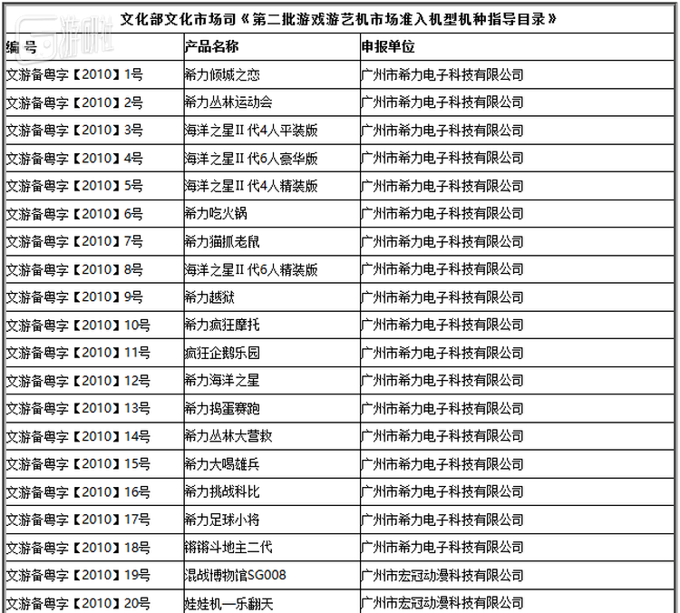 这些东西通常没有很高技术含量,只要够结实,别被砸烂,再加上一个合适的算法保证电玩城稳赚不赔就行。但最难搞定的其实是相关的生产许可证——捕鱼机、老虎机这类的设备因为带有“赌博”性质,一般很难合法经营。但资料表明,2010年文化部文化市场司公布了《第二批游戏游艺机市场准入机种指导目录》,一共80款批准设备中就有19款是广州希力公司出品。