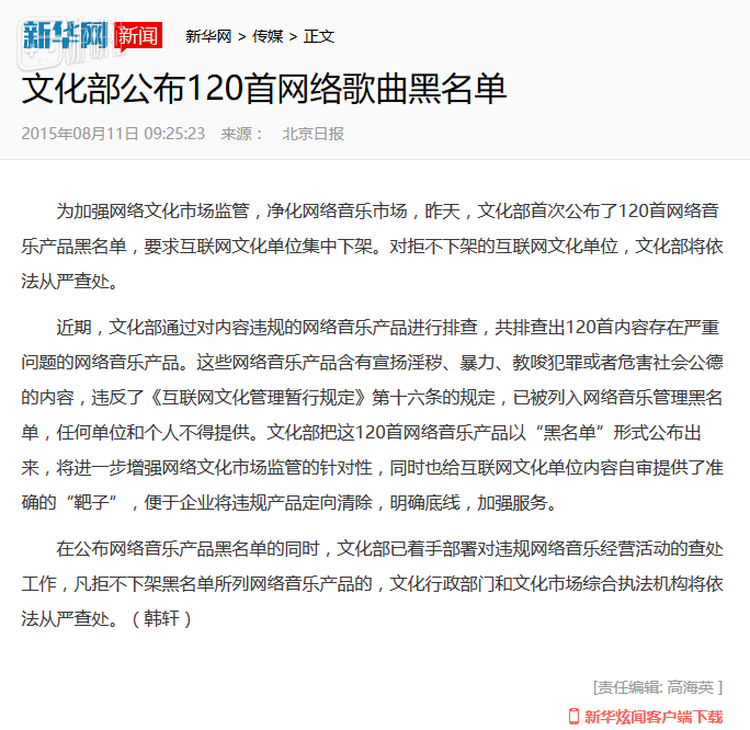 相关文件中,对这些歌曲的评价是“宣扬淫秽、暴力、教唆犯罪或危害社会公德”。名单公布很久之后,经朋友提醒,郝雨发现自己十多年后“又成了网络热词”。至于《大学自习室》触碰了其中哪条,他也毫无头绪。