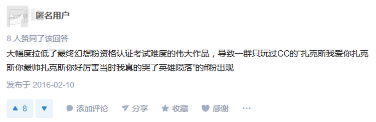 在知乎“如何评价FF7CC”问题下的回答,“FF婆罗门”对“FF吠舍”抱有的深深不屑,可视为一件历史悠久的事物突然流行后的副产品