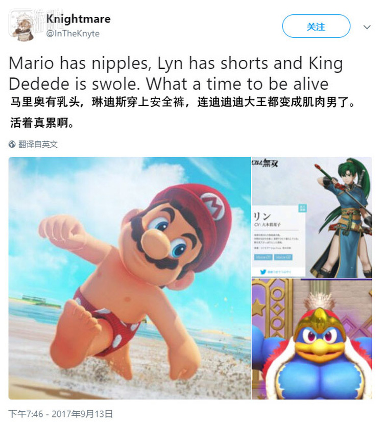 不仅是马里奥的粉丝们参与到了这场恶搞的狂欢之中,塞尔达,火焰纹章,卡比还有耀西的粉丝们也纷纷参战。这些粉丝表示,“今天可能是我人生中最艰难的一天。(童年理想崩塌了……)”