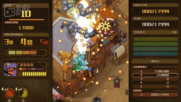 最初做手游单机版的时候,他和合伙人几乎零游戏开发经验,基本上是“边交学费边做游戏,走了很多弯路”,回过来看发现还有很多进步的空间。于是在之后的时间里,郭星和他的团队为原版的《愤怒军团》加了很多关卡内容,设计了更具耐玩度的系统(比如每过一关会出现三个随机的Buff供选择,增加重复可玩性),并提供了同屏双打、全球在线排名、观赏高手录像等功能,并加了完善的教学指导。