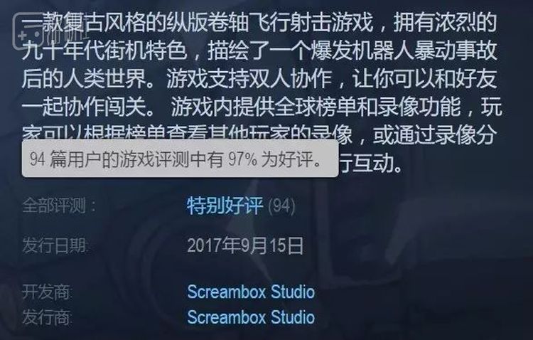 游戏上线后,销量果然很惨,评价倒是极高。我上周去看总评的时候,有60多个用户评测,好评率是罕见的100%,今天再去看,评测数增加了一些,总评为97%好评,在Steam上是一个特别高的评价。但游戏只卖了不到3000套。