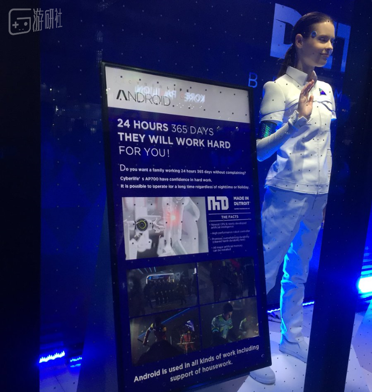 根据橱窗中的官方说明,玩家现在就可以在展台上以7999美元的价格预定一台属于你自己的“真人机器人”,这种在底特律生产的机器人可以成为你24小时的伴侣,同时还将享受30天包退和5年保修,并且接受深度订制。