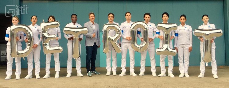 Quantic Dream工作室联合创始人Guillaume与所有的“真人机器人”合影