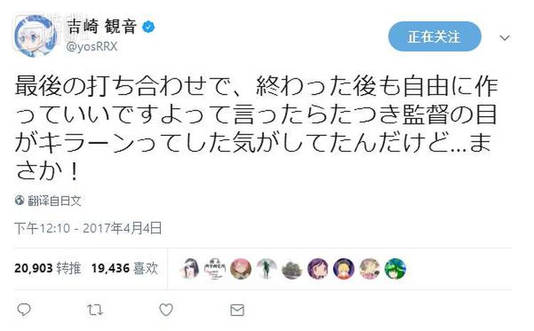 “感谢收看,看了大家在推特上的感想,也算松了口气,今天能睡个好觉了,会尽最后的努力加油的。——动画制作成员”